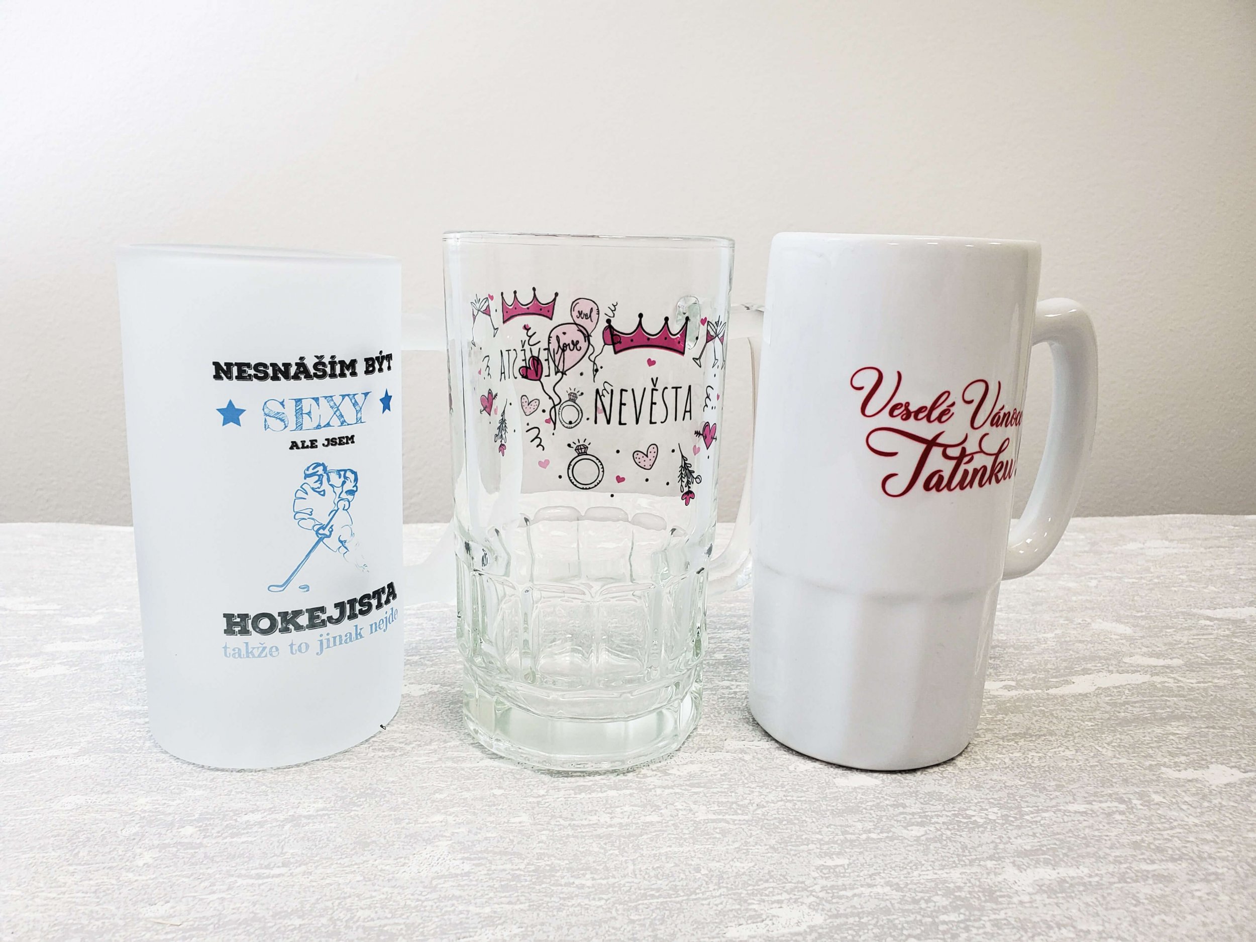 Hokejový půllitr s motivem LOVE s hokejkou a helmou se hodí jako originální dárek pro hokejisty i fanoušky, kteří žijí každým zápasem. Matný skleněný půllitr s jemným pískovaným efektem a kvalitním potiskem.